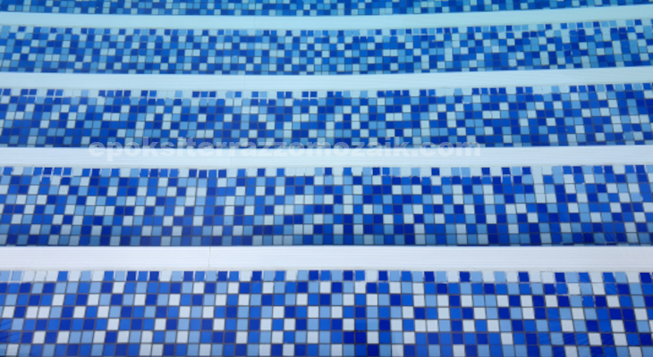 Mozaik merdivenler, doğal taş agrega ile beyaz, renkli çimento ve su karışımından yapılmaktadır.